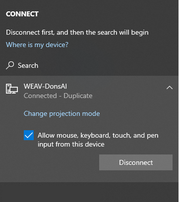 An unsupported option in Weav is to use Miracast (Wifi Direct) for sharing of Windows laptop devices. This technology allows windows devices to share their screens without being on the same network. They do require the proper wifi-direct hardware. This option is currently unsupported so use at your own risk.